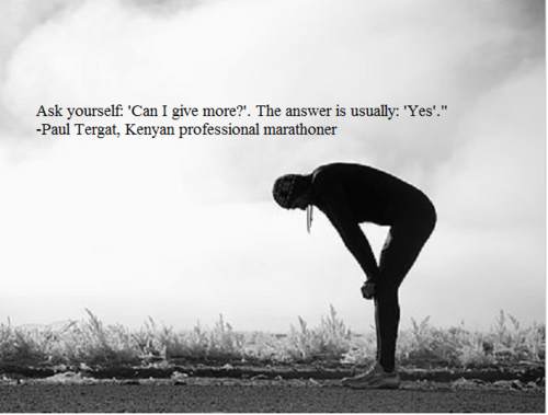 1. Every time you feel like giving up just go one more mile or 1 more day and you’ll find your motivation again.